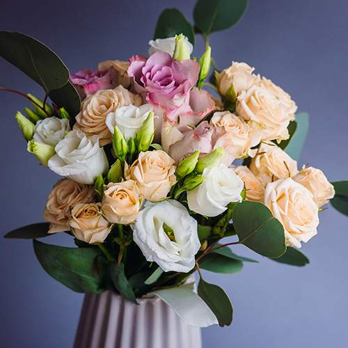 Еустоми трохи схожі на спрей. Вони ніжні та вишукані. Їх часто називають альтернативою трояндам. Їх часто використовують у весільних букетах та стильних композиціях. Еустома чудово поєднується в міксах із кущовою трояндою. Популярні кольори: білий, рожевий, фіолетовий.
